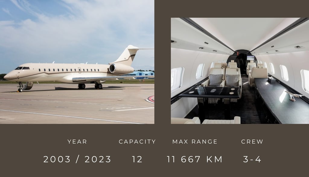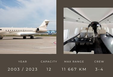 Global Express is an elite ultra-long-range business jet designed for the most discerning travelers seeking maximum comfort, privacy, and the freedom to travel wherever they want. Its large, meticulously renovated cabin (due for renovation in 2023) provides space for relaxation, work, or quality leisure in the air.