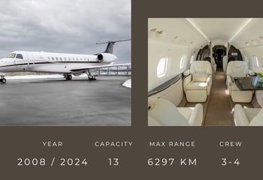 The Legacy 600 is a reliable and functional business class aircraft, perfect for both medium and long-haul travel. Its spacious cabin provides comfort and privacy, and its balanced maintenance and operating costs make it a rational choice for travel without compromise. The Legacy 600 is ideal if you are looking for a comfortable, reliable and flexible aircraft to go where you want on your terms.