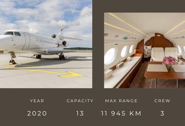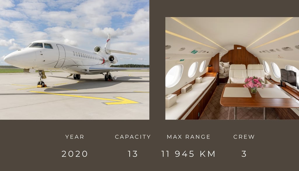 The Falcon 8X is an ultra-long-range business jet designed for non-stop global travel. Its cabin, the longest of any Falcon family aircraft, offers maximum comfort, privacy and options: you can choose from more than 30 interior layouts.