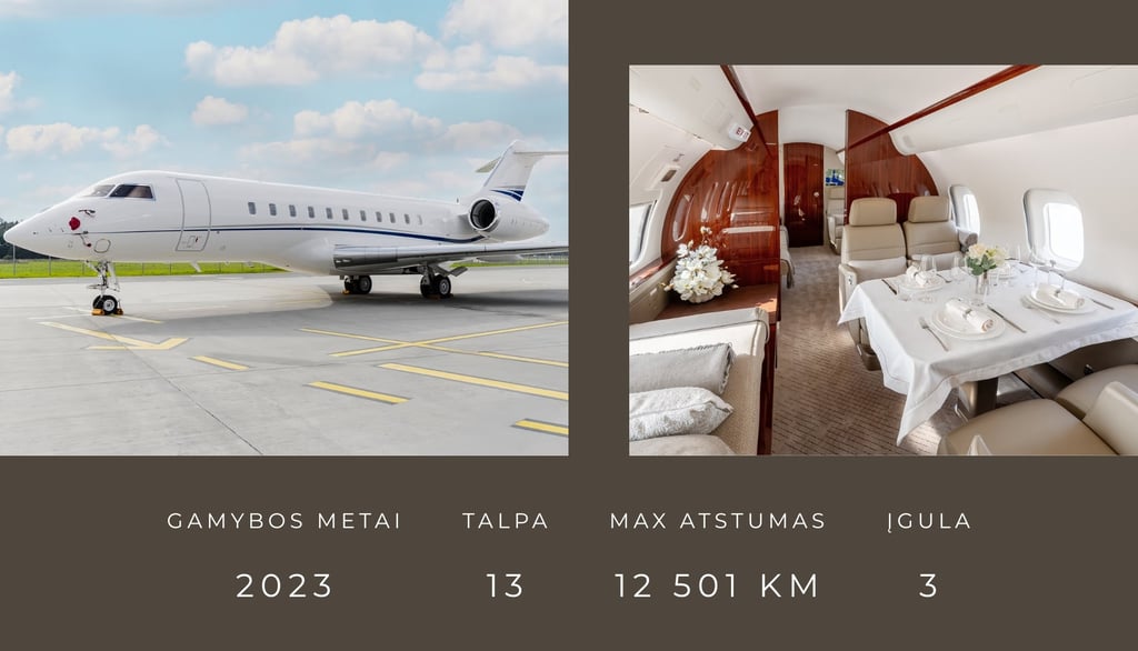 Global 5500 - itin tolimo nuotolio verslo lėktuvas, suteikiantis aukščiausio lygio komfortą ir privatumą. Tobula pasirinkimo galimybė reisams tarp žemynų: tylus salonas, modernus interjeras, puikus kabinos mikroklimatas ir erdvė visiems keleiviams. Global 5500 idealiai tinka tiek verslo kelionėms, tiek ilgoms tarptautinėms kelionėms su aukščiausiais komforto standartais.